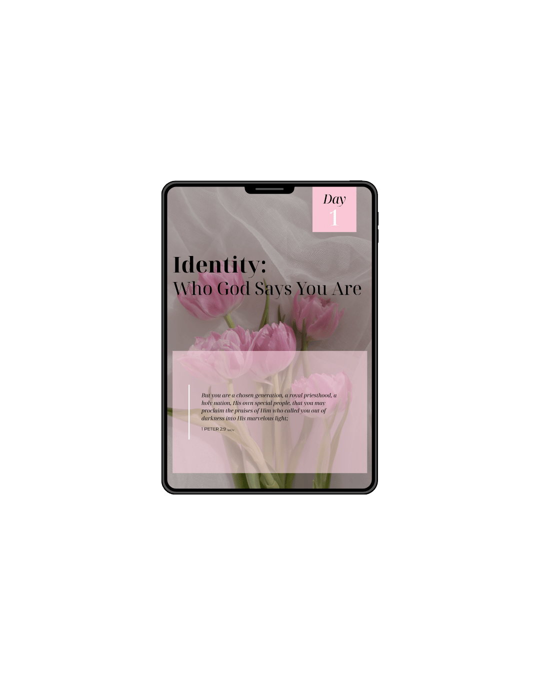 This free sample gives you Day 1 of Identity Restored which includes teaching from 1 Peter 2:9, reflection questions, and a practical action step you can do today